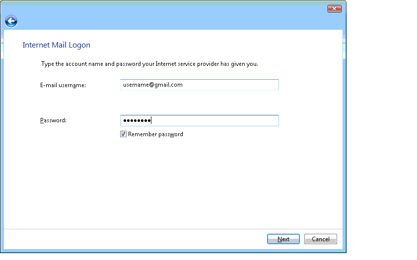 | 5) Enter your full email address and password, and click Next. |