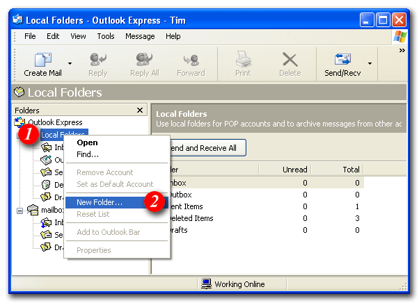 To help you to manage your mail quota you may find it useful to create a number of sub- folders within your local folders area. To create a new sub-folder: