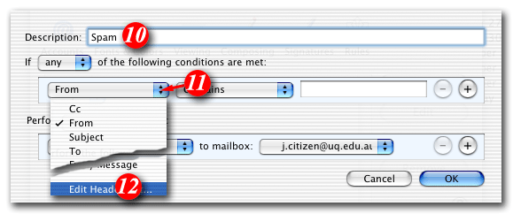 For example, if you wanted to consider anything with a score of 3 or more to be spam, the rule would look like: 'X-SpamDetect: ***'. Decreasing the number of asterisks will result in Mac Mail classifying more e-mails as spam. You may need to check your spam folder more carefully for non-spam e-mails that might have been classified as spam. If you wanted to rate anything with a score of 8 or greater as spam, the rule would look like: 'X-SpamDetect: ********'. Increasing the number of asterisks may result in fewer filtered e-mails being classified as spam and more potential spam staying in your Inbox.
